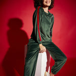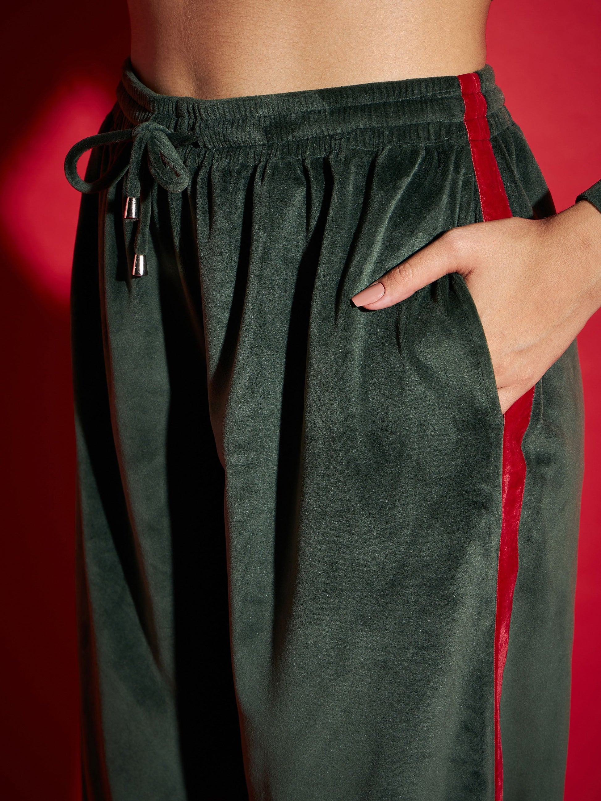 Women Emerald Velour Tape Detail Sweatshirt With Joggers