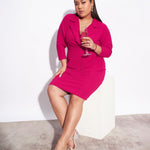 Fuchsia Blazer Detail Bodycon Dress, in Karera Knit fabric, Unlined, Knee Length, Bodycon, Zipper Closure, Straight Hemline and features Pig Nose Button Detail At Front