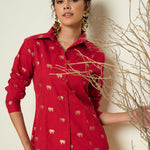 Women Fuchsia Foil Print Shoulder Padded Slim Fit Poplin Shirt