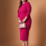 Fuchsia Glitter Bodycon High Neck Dress, in Glitter Karera fabric, Unlined , Midi Length , Straight Fit, Zipper Closure, Straight Hemline and features Slit Detail At Back Side