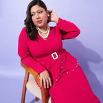 Fuchsia Peplum Bodycon Dress, in Karera Knit fabric, Unlined, Midi Length, Body Con Fit, Zipper Closure, Straight Hemline and features Peplum Detail At Front