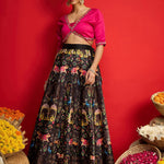 Women Fuchsia Poly Silk Crop Top With Anarkali Skirt