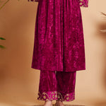 Women Fuchsia Velvet Embroidered Straight Pants