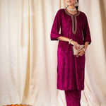 Fuchsia Velvet Straight Kurta, in Velvet fabric, Unlined, Calf Length, Straight Fit, No Closure, Straight Hemline and features Side Cargo Pocket