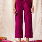 Fuchsia Velvet Straight Pants, in Velvet fabric, Unlined, Ankle Length, Straight Fit, Elasticated Waist, Straight Hemline and features Embroidery At Front Placket