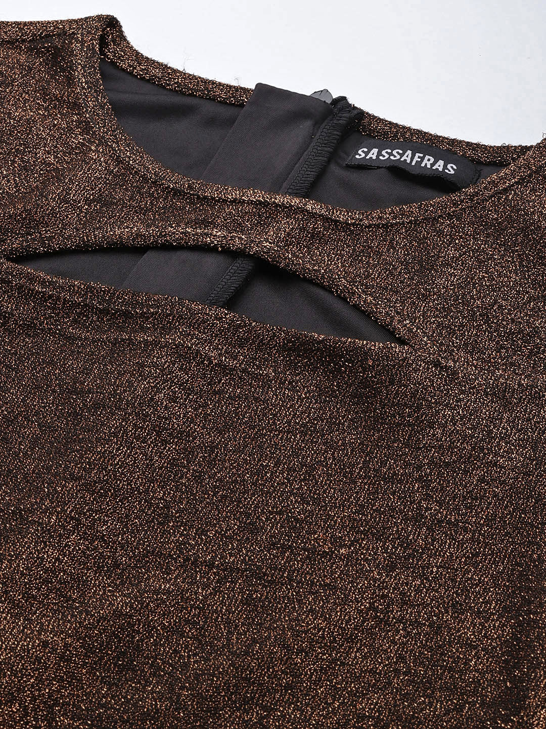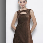Women Gold Lurex Front Moon Cut A-Line Dress