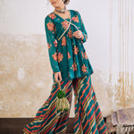 Women Green Floral V Neck Peplum Top With Sharara Pants