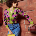 Green Geometric Front Open Wool Cardigan, in Wool fabric, Unlined, Regular Length, Comfort Fit, Button Closure, Straight Hemline and features Plastic Button Detail
