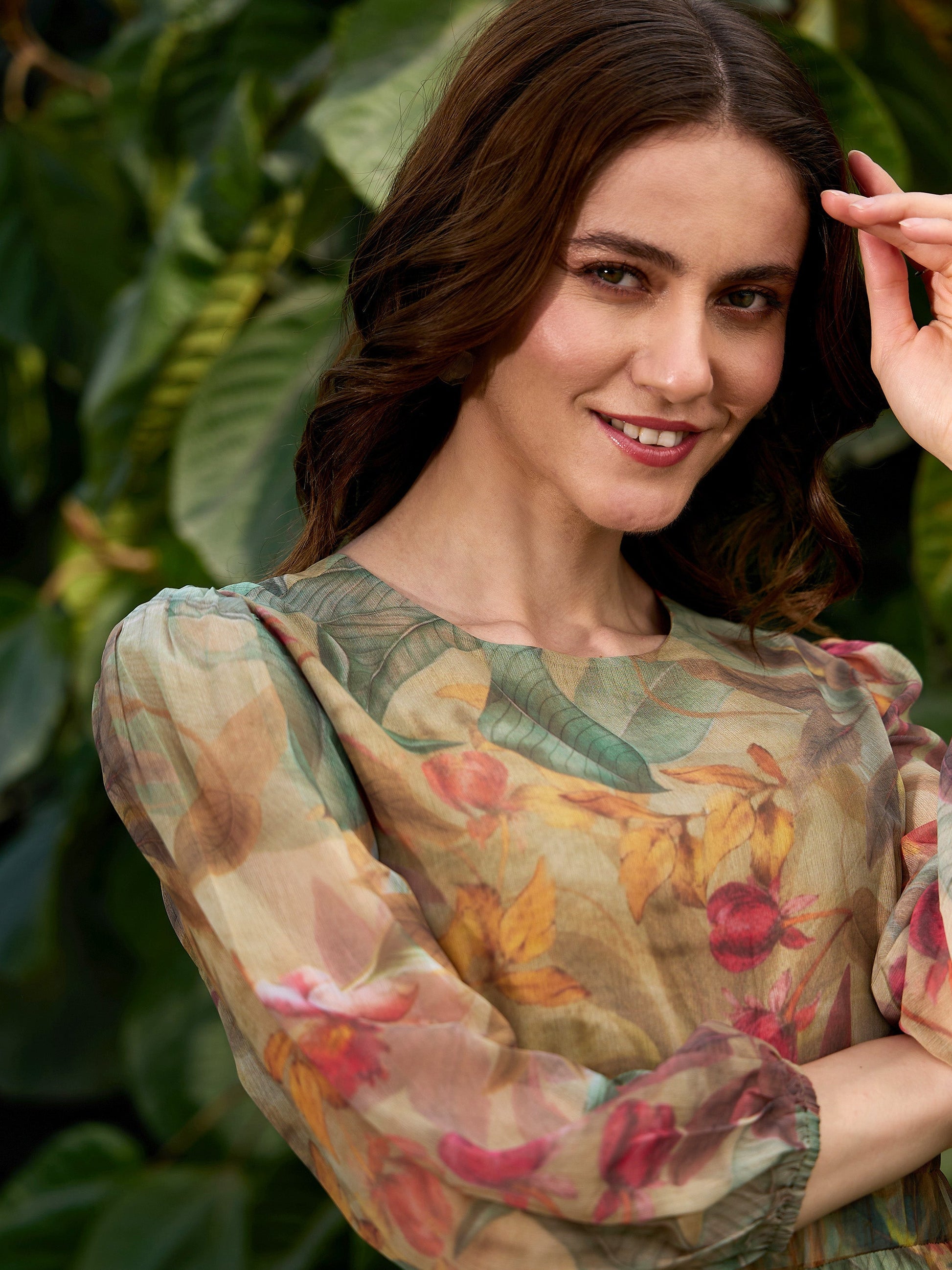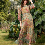 Women Green Jungle Print Waist Cut Out Maxi Dress