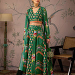Women Green Multi Floral Crop Top With Anarkali Skirt & Shrug