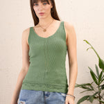 Green Scoop Neck Sleeveless Crochet Top, in Acrylic fabric, NA, Regular Length, Slim Fit, No Closure, Straight Hemline and features