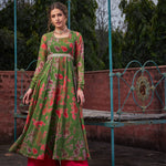 Women Green Tie & Dye Back Criss Cross Dori Anarkali Kurta
