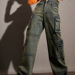 Women Green Washed Multi Pockets Detail Jeans