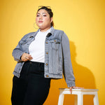 Grey Acid Washed Basic Denim Jacket, in Denim fabric, Unlined, Regular Length, Comfort Fit, Button Closure, Straight Hemline and features Patch Pocket At Front