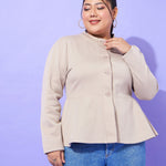 Grey Fleece Button Peplum Jacket, in Fleece fabric, Unlined, Regular Length, Fit And Flare, Button Closure, Straight Hemline and features Button Detail At Front