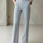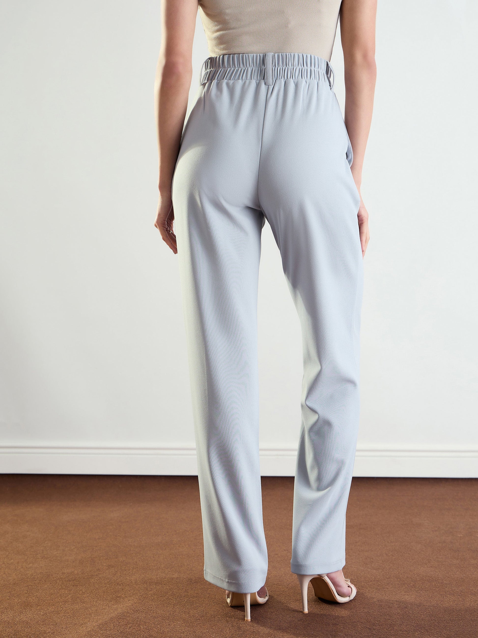 Grey Front Dart Straight Fit Pants, in Canton Knit fabric, Unlined, Full Length , Straight Fit, Button Closure, Straight Hemline and features Front Dart Detail