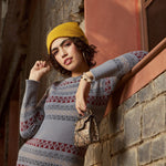 Grey Geo Woolen Sweater Dress, in Nylon fabric, Unlined, Knee Length, Bodycon, No Closure, Straight Hemline and features All Over Self Design
