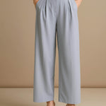 Women Grey High-Rise Front Pleated Korean Pants
