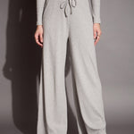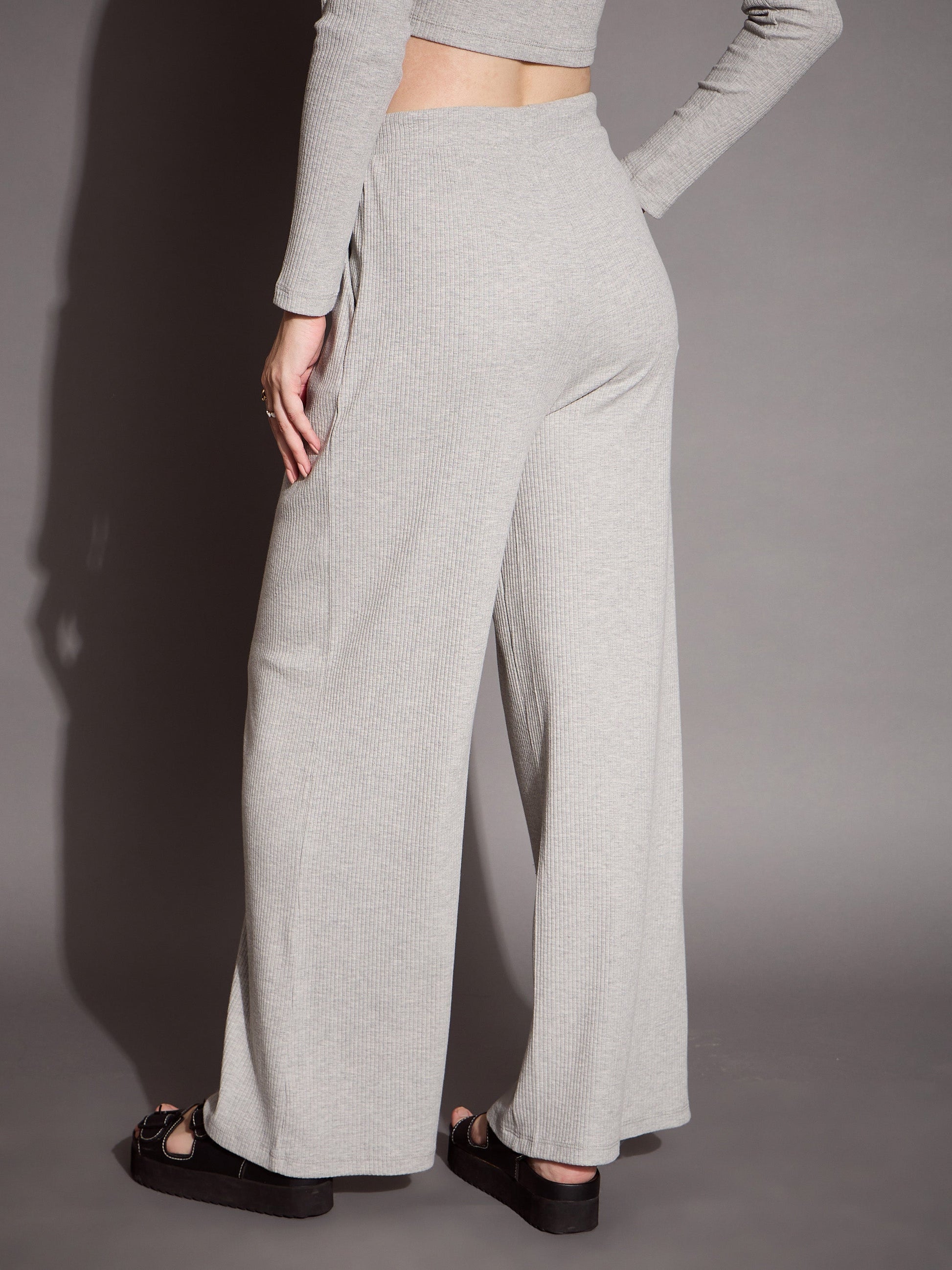 Grey Melange Rib Drawstring Pants, in Rib fabric, Unlined, Regular Length, Comfort Fit, Drawstring Closure, Straight Hemline and features Drawstring Closure