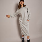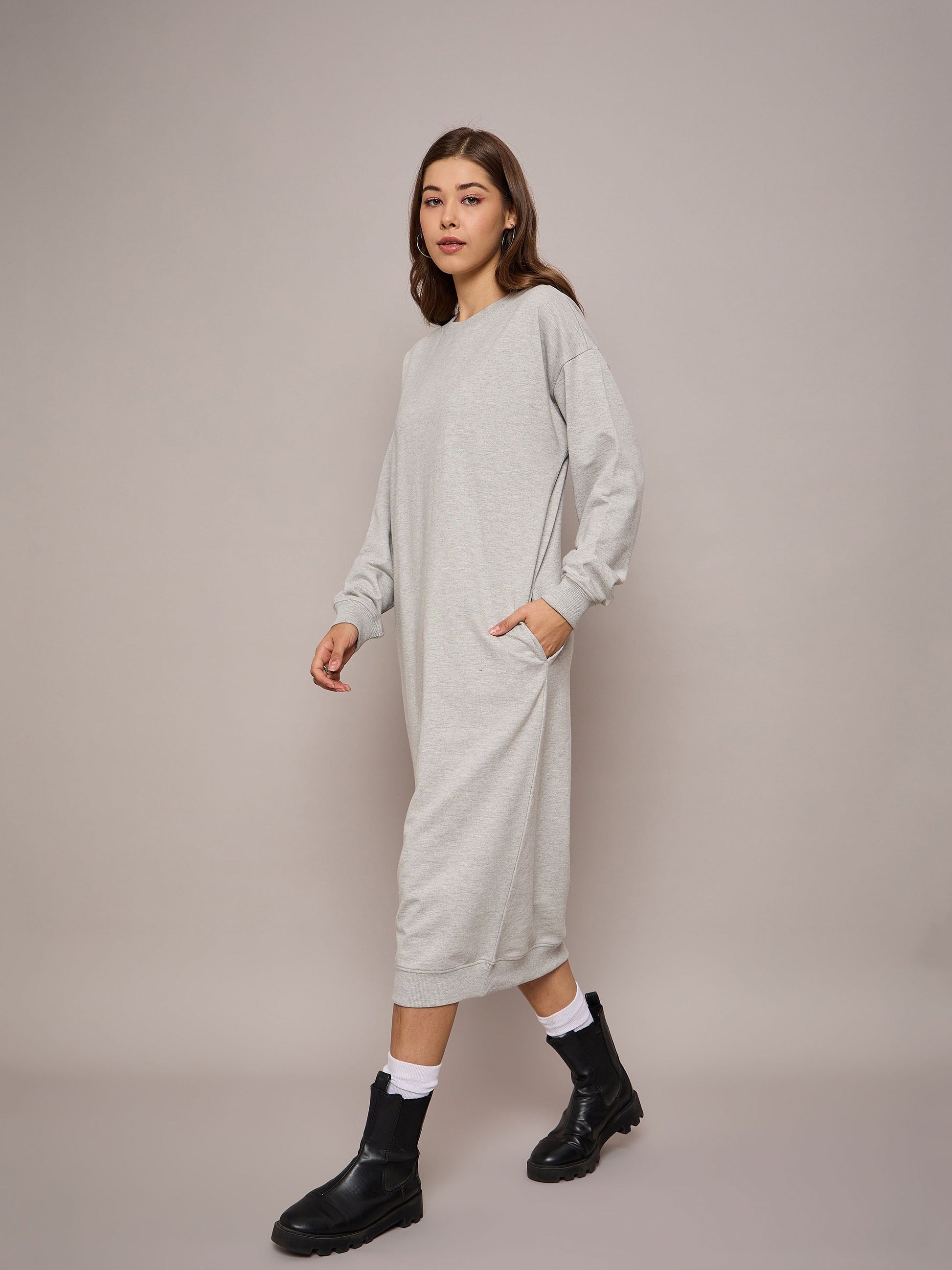Women Grey Melange Terry Oversized Midi Sweat Dress