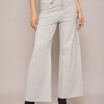 Grey Melange Terry Wide Leg Track Pants, in Terry 250 Gsm fabric, Unlined, Full Length, Comfort Fit, Drawstring, Straight Hemline and features Drawstring Detail At Waist