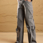 Grey Pocket Loop Detail Cargo Pants, in Cotton Twill Lycra fabric, Unlined, Full Length, Comfort Fit, Zipper Closure, Straight Hemline and features Loop Detail At Pockets