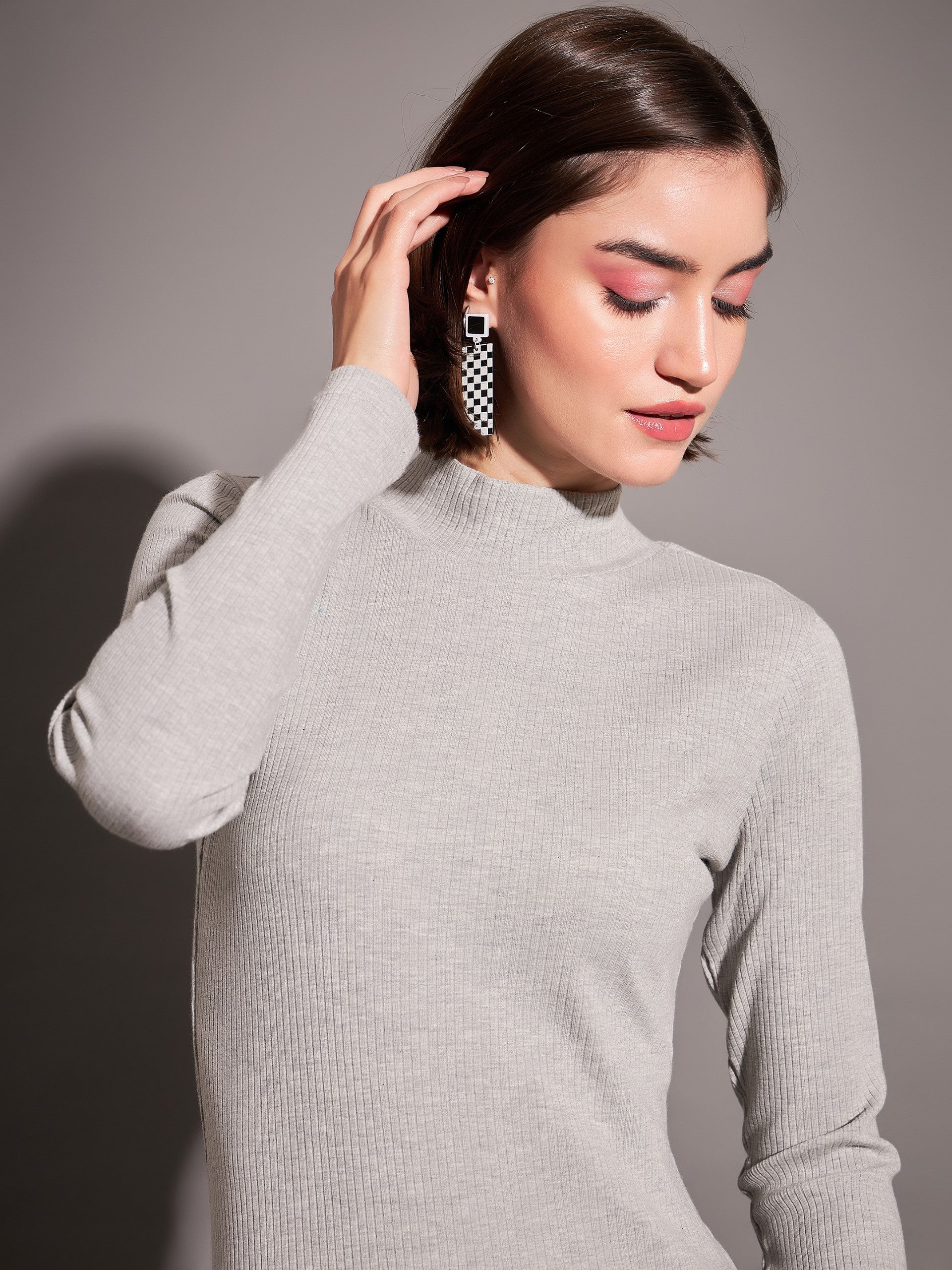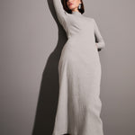 Women Grey Rib High Neck Maxi Dress