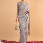 Women Grey Sequins RTW Draped Saree With Unstitched Blouse