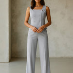 Women Grey Sleeveless Button Top With Straight Pants