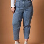 Ice Blue Denim Balloon Fit Jeans, in Denim fabric, Unlined, Ankle Length, Comfort Fit , Button Closure , Straight Hemline and features Side Inlay Pockets Detail