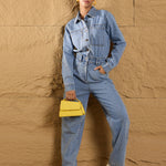 Women Ice Blue Denim Full Sleeve Jumpsuit