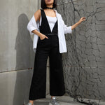 Women Jet Black Deep V-Neck Denim Flared Leg Jumpsuit