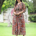 Brown Multi Chiffon Festive Printed Flared Jump Suit
