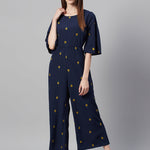 Darkblue Micro Poly Embroidered Regular Jumpsuit