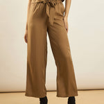 Khaki Paperback Waist Pants, in Rayon Tencel fabric, NA, Full Length, Comfort Fit, Slip On, Straight Hemline and features Belt At Waist