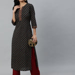 Women Green Ethnic Printed Straight Kurta With Three Quarter Sleeves