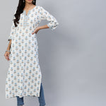 Women Off White Printed Straight Kurta With Three Quarter Sleeves