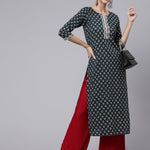Green Printed Straight Kurta With Three Quarter Sleeves