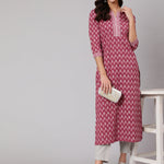 Mauve Printed Straight Kurta With Three Quarter Sleeves