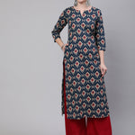 Blue Ethnic Printed Straight Kurta With Three Quarter Sleeves