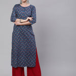 Blue Ethnic Printed Straight Kurta With Three Quarter Sleeves