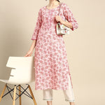 Pink Floral Printed Kurta With Three Quarter Sleeves