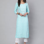 Blue Ethnic Printed Straight Kurta With Three Quarter Sleeves