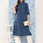 Blue Geometric Printed Straight Kurta With Three Quarter Sleeves