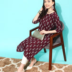 Burgundy Ethnic Printed Straight Kurta With Three Quarter Sleeves
