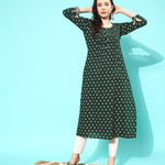 Green Ethnic Printed Straight Kurta With Three Quarter Sleeves