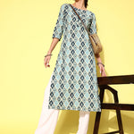 Blue Ethnic Printed Straight Kurta With Three Quarter Sleeves