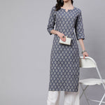 Grey Ethnic Printed Straight Kurta With Three Quarter Sleeves