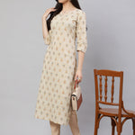 Cream Ethnic Printed Straight Kurta With Three Quarter Sleeves