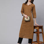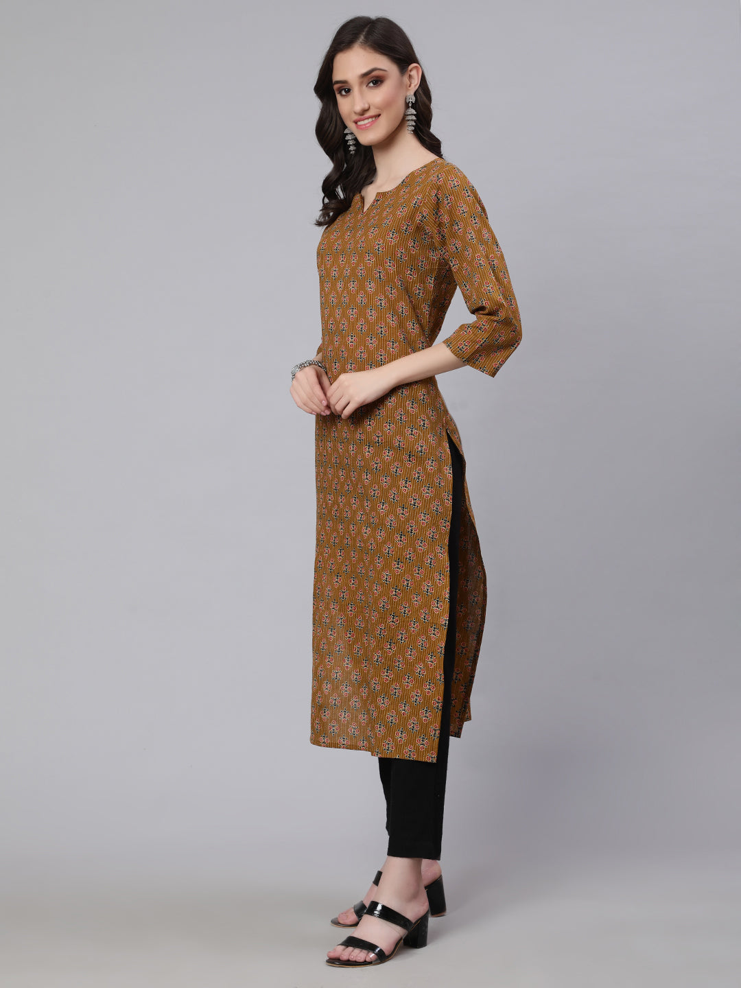 Women Yellow Printed straight Kurta With three quarter sleeves